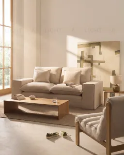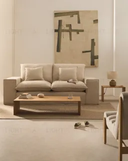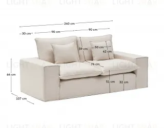 Этот 2-местный диван сочетает в себе мягкость, дизайн и комфорт в изделии, созданном для обеспечения максимально комфортного отдыха. Обитый приятной на ощупь льняной тканью бежевого цвета, он имеет полностью съемный чехол, что облегчает его чистку и уход. Он включает в себя чехол и декоративные подушки, также со съемными чехлами, которые дополняют комплект уютной и непринужденной эстетикой. Чтобы сохранить их внешний вид и текстуру, а также предотвратить усадку, мы рекомендуем стирать чехлы профессионально