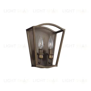 Бра Elstead Lighting FE-YARMOUTH-2W. Светильник представляет собой элегантную и выразительную интерпретацию традиционных фонарей. Квадратный каркас имеет стильные изгибы, верхняя часть изящного силуэта имеет форму арки. Полностью открытый, без стёкол. Основание в цвете - Латунь. Можно использовать при освещении гостинной, кабинета, кухни, прихожей, спальни, столовой.