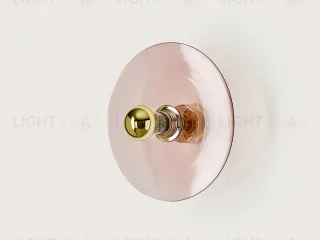 Настенное бра из золотистого металла и розового прозрачного стекла, выполненное в современном стиле.