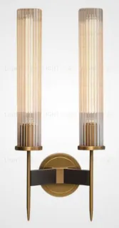 Габариты:  45 x 20 x 12.5 см Цвет: Латунь / Прозрачный + черная вставка                         Тип лампы: E14*2
