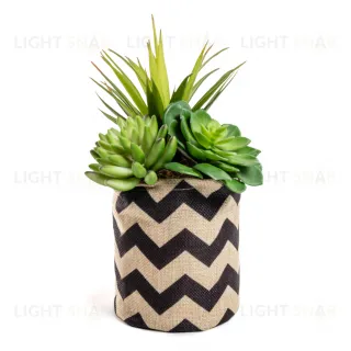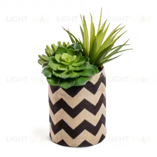 Декоративное суккулентное растение в горшке из ткани с черным зигзагообразным рисунком. Он также дополнен эффектом почвы, что делает его еще более аутентичным. Идеальный аксессуар, чтобы вдохнуть свежий воздух и цвет в ваши интерьеры.