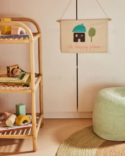 Гобелен Leshy сделан, чтобы создавать ощущения. Помимо добавления красочного акцента, картина отличается различными текстурами, которые приятны на ощупь и развивают чувства. А простой и незатейливый домик – понятное изображение для каждого малыша.