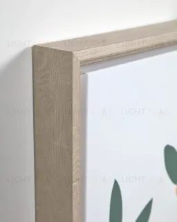 Картины прямоугольной формы, одинаковые по размеру. Рамы сделаны из МДФ цвета акации. Они покрыты прозрачным лаком. Изображения нанесены на холст белого цвета методом печати.