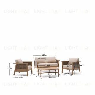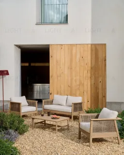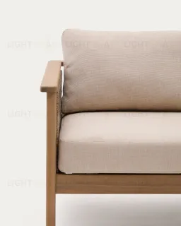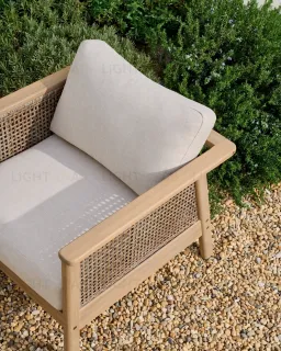 Alabe отличается универсальным и прочным дизайном, идеально подходящим для создания уютной атмосферы как в помещении, так и на улице. Его конструкция и синтетические шнуры из ротанга на сиденье устойчивы к ультрафиолетовым лучам. Древесина акации, из которой он изготовлен, выглядит тепло и естественно, а также имеет сертификат FSC 100%, который гарантирует ответственное лесопользование. Мы рекомендуем ежегодно наносить на него средство для защиты древесины Sterina, чтобы сохранить его внешний вид и продлить срок службы. Подушки, разработанные для обеспечения максимального комфорта, имеют пенопластовые и водоотталкивающие чехлы, что делает их идеальными для повседневного использования. Они также снимаются для легкой чистки, позволяя содержать весь комплект в безупречном состоянии. Под сиденьями расположены белые лямки, придающие сиденьям изысканность и дополнительную поддержку.