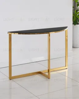 Консоль АЛЬБА благодаря оригинальной форме станет ярким дизайнерским акцентом в интерьере. Каркас стола изготовлен из нержавеющей стали, столешница - закаленное стекло.