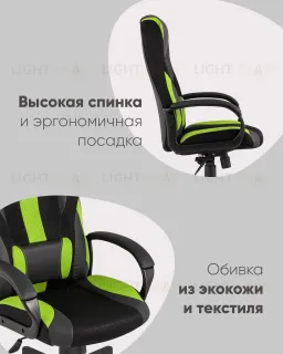 Геймерское кресло компьютерное игровое TopChairs ST-CYBER 9 GREEN ткань/экокожа черный/зеленый