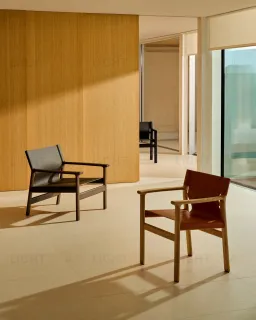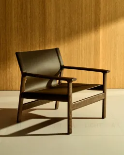 Кресло Jan из переработанной кожи темно-коричневого цвета и ясеня в ореховом цвете