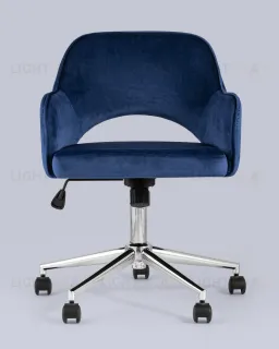 Компьютерное кресло Кларк синий обивка велюр крестовина хромированный металл