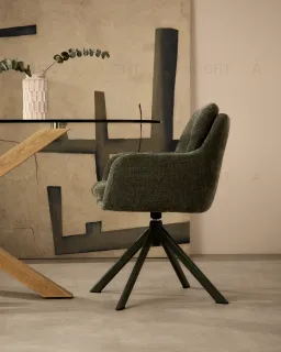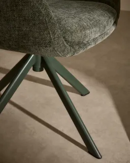 Lexa Вращающееся кресло из зеленого шенилла и стальными зелеными ножками
