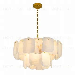 Люстра подвесная Cloyd KNOSS (Клойд Кносс) C9 / арт.12350, ø: 60 см. высота: 35 см (подвес в комплекте - до 150 см), источник света: E14 х 9 шт, цвет металла - латунь. Особенности: алебастр или Облачный Камень - минерал с повышенной светопроницаемостью.Гарантия: 1 год.