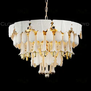 Люстра подвесная Cloyd PLINSE (Клойд Плинс) C12 / арт.11456, ø: 61 см. высота: 44 см (подвес в комплекте - до 50 см), источник света: E14 х 12 шт, цвет металла - золото блестящее. Особенности: керамика высокого качества.Гарантия: 1 год.