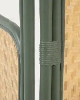 Разделитель комнаты Margaret – это дизайн с большим акцентом на натуральность и экологичность. Здесь каждая деталь эксклюзивна, потому что она изготовлена из ротанга – натурального волокна, которое изогнуто и заплетено вручную. Зеленая структура подчеркивает природный материал и делает его более заметным.