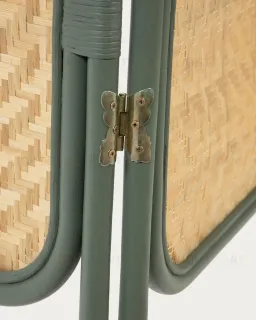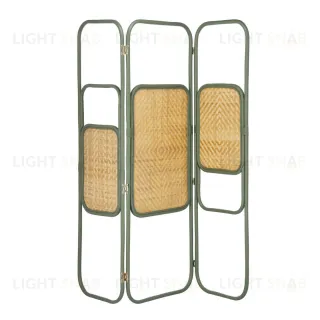 Межкомнатная ширма состоит из трех металлических рамочных стенок, внутри которых панели из ротанга.