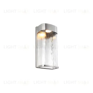Настенный фонарь Elstead Lighting FE-BENNIE-L-PBS. Современный светильник имеет встроенный led модуль, скрытый под короной светильника. Плафон из прозрачного ломаного стекла пропускает мягкий свет. Крепкая алюминиевая конструкция обеспечивает продолжительный срок службы. Основание выполнено в цвете - Матовая сталь. Идеально подойдет для уличного освещения, степень защиты IP44.