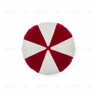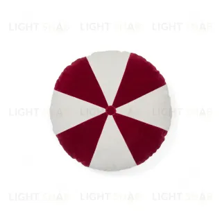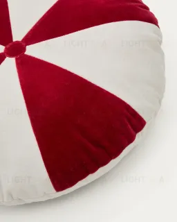 Подушка круглая. Она сшита из 100% хлопка. Цвет зависит от выбранной модели — горчично-белая или красно-белая.