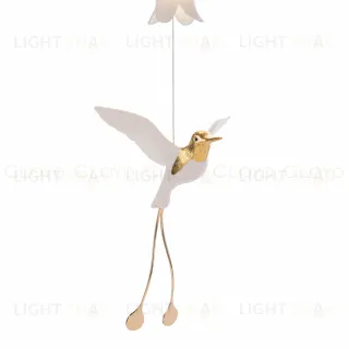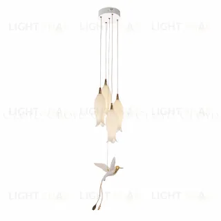 Подвесной светильник Cloyd ARGANA (Клойд Аргана) P4 / арт.11246, ø: 20 см. высота: 150 см, источник света: E14 х 4 шт, цвет металла - белый (окраска). Фурнитура - золото. Особенности: керамика высокого качества, птица выполнена из фарфора.Гарантия: 1 год.