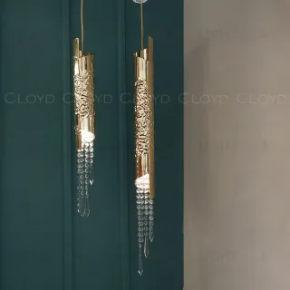 Подвесной светильник Cloyd EFIALT (Клойд Эфиальт) P1 / арт.11523, ø: 8 см. высота: 86 см, источник света: G9 х 1 шт, цвет металла - золото блестящее. Особенности: хрусталь К9.Гарантия: 1 год.