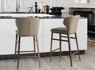Данный полубарный стул конструкционно состоит из двух частей — цельного сиденья и опоры. Сиденье целиком обтянуто экокожей — прочного и практичного материала, который не вызывает аллергии и сложности в уходе. Кроме того, его мягкий цвет «кофе с молоком» гарантирует изделию гармоничное сочетание с мебелью других оттенков. Форма спинки нестандартная — ее края завернуты внутрь, благодаря чему сидеть в стуле будут более комфортно, за счет увеличения площади опоры (не только сзади, но и сбоку).