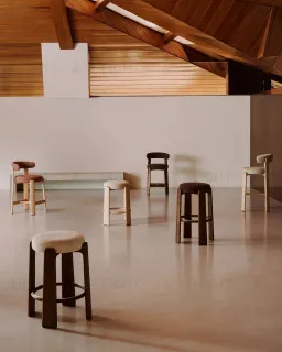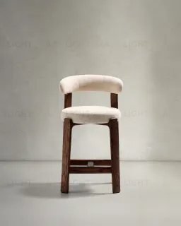 Полубарный стул Granite из бежевого шенилла и ясеня с отделкой орех 65 см