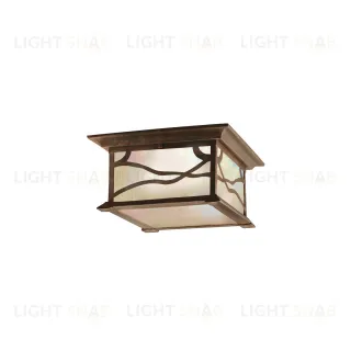 Потолочный фонарь Elstead Lighting QN-MORRIS-F. Миссионерский стиль, распространённый на юго-западе америки колониальной эпохи. Искусственно состаренное медное покрытие. Фактурное матовое стекло. Алюминиевая конструкция. Можно использовать при уличном освещении, степень защиты IP44.