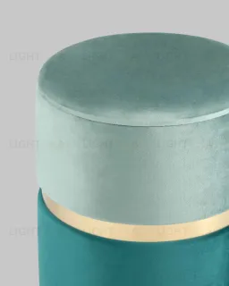 Пуф Кэрри с ящиком велюр бирюзовый с декоративным золотым ободком