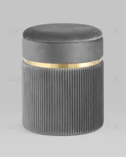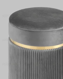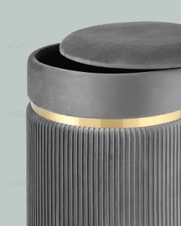 Пуф Миранда с ящиком велюр серый с декоративным золотым ободком