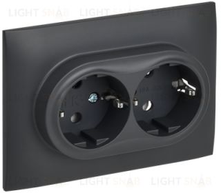 Розетка 2-местная с заземлением без защитных шторок 16А в сборе IEK Skandy титан SK-R21-16-K48-F