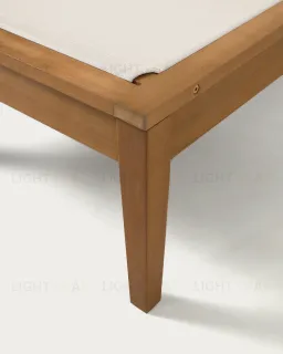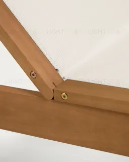 Шезлонг полностью выполнен из массива эвкалипта. Древесина покрыта лаком цвета тикового дерева, который защищает ее от негативного воздействия влаги и солнца.