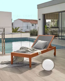 Шезлонг Caterin сочетает в себе два важных свойства – это уникальную красоту эвкалипта и практичность верхнего покрытия. Такое изделие не смутят прямые солнечные лучи и брызги из бассейна. Поэтому наслаждайтесь уикендом возле дома в полном комфорте, в любом положении тела.