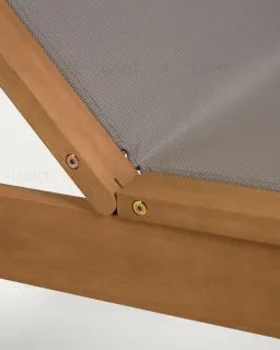 Шезлонг полностью выполнен из массива эвкалипта. Древесина покрыта лаком цвета тикового дерева, который защищает ее от негативного воздействия влаги и солнца.