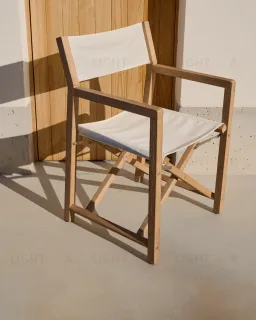 Складной стул Vilara для улицы из акации и текстиля белого цвета