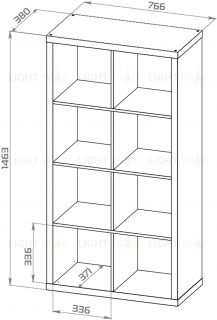 Стеллаж Фора 8, прямоуголной формы с двумя рядами ячеек, тамбурат, цвет дуб беленый