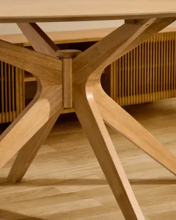 Каждый стол Naanim уникален, изготовлен из натурального дубового шпона и ножек из массива каучукового дерева. Кроме того, волокна сходятся в форме звезды с эксклюзивными оттенками, что придает ему отличительный характер.