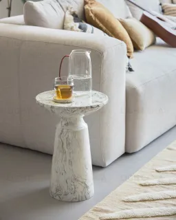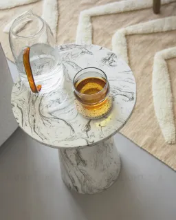 Приставной столик Kesbury – уникален по своей технологии изготовления. Ведь сделан он не из мрамора, как это может показаться на первый взгляд, а из стали. Секрет – в особой технике покрытия эмалью. Что в итоге? Дизайнерский предмет интерьера с уникальным рисунком и весом в разы меньше, чем каменный аналог.