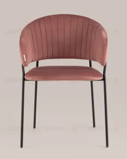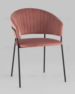 Стул с подлокотниками Бруно велюр пыльно-розовый ножки черные металл