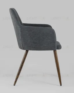 Стул Кинг серый с подлокотниками и широкой спинкой обивка плотная ткань ножки металл