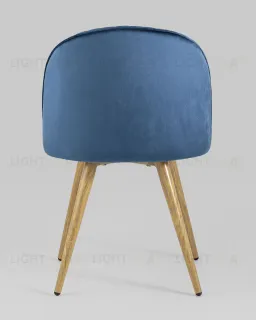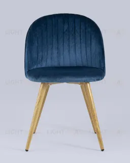 Стул Лион Страйпс голубой обивка из велюра спинка с вертикальной прострочкой каркас из оцинкованного металла с принтом под натуральное дерево