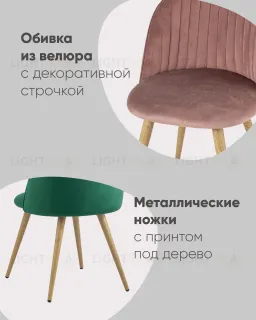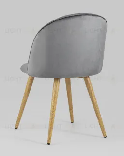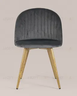 Стул Лион Страйпс серый обивка из велюра спинка с вертикальной прострочкой каркас из оцинкованного металла с принтом под натуральное дерево