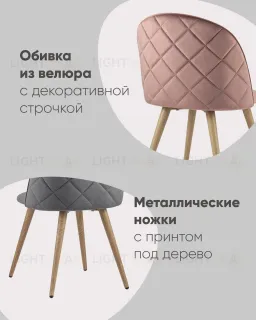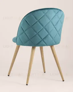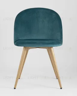 Стул Лион цвет сине-зеленый, обивка из мягкого велюра, металлический каркас с принтом под дерево