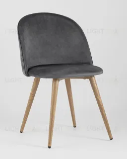 Стул Stool Group Лион с ромбами серый, металлические ножки под дерево, велюровая ткань, спинка с ромбовидной стежкой