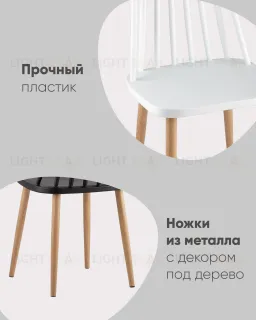Стул пластиковый Морган белый, ножки металлические с принтом под дерево