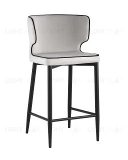 Стул полубарный Матео с кантом велюр светло-серый ножки металл черные