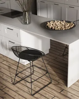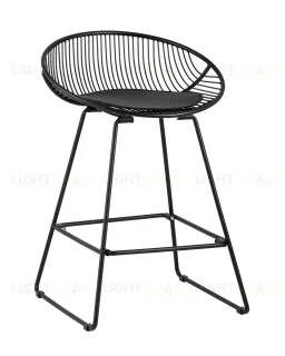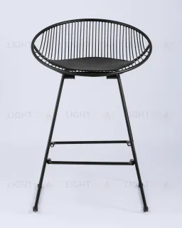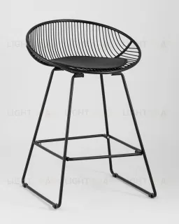 Стул барный UFO черный металл с черной подушкой из экокожи