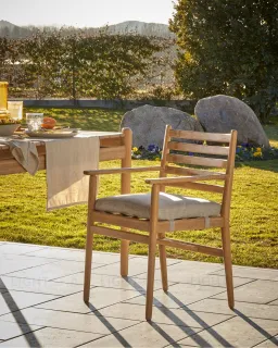 Стул Simja – это ценность древесной породы и уникальность тонов и зерен. Такая модель несомненно создаст уютную и лаконичную обстановку на вашей террасе или другой уличной зоне отдыха. Комфорт обеспечит мягкая подушка, а прочность древесной породы – многолетнюю эксплуатацию.