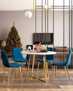 Стул Валенсия SN велюр темно-синий золотые ножки