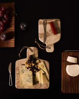 Suka Большая сервировочная доска из бежевого мрамора и нож из металла