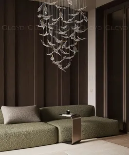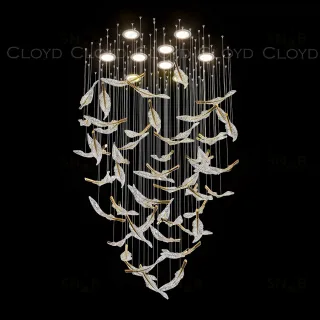 Световая композиция Cloyd AERIA 1686 (Клойд Аэрия) S60 / арт.60002, ø: 80 см. высота: 200 см. Без потолочной чаши. Композиция включает в себя: 60 стеклянных элементов (цвет стекла - прозрачный и золото), потолочные крепежи, трос, фиксаторы для стекол и сопроводительную документацию для монтажа.Рекомендуемое количество источников света — 9 шт (не включены в стоимость). Возможны любые изменения размеров и форм под ваш проект.