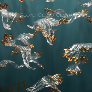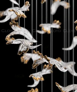 Световая композиция Cloyd AERIA 1703 (Клойд Аэрия) S60 / арт.60001, ø: 80 см. высота: 200 см. Без потолочной чаши. Композиция включает в себя: 60 стеклянных элементов (цвет стекла - прозрачный и золото), потолочные крепежи, трос, фиксаторы для стекол и сопроводительную документацию для монтажа.Рекомендуемое количество источников света — 9 шт (не включены в стоимость). Возможны любые изменения размеров и форм под ваш проект.