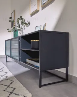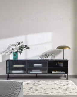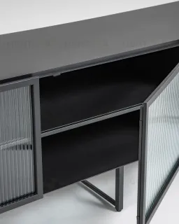 Тумба под TV Trixie завораживает с первого взгляда. Рифленое стекло создает удивительный эффект преломления света, за которым можно наблюдать вечно. Роскошный черный усиливает впечатление от происходящей магии. Он непоколебимо остается одним из самых популярных цветов современного минимализма. Такая модель станет ярким элементом в гостиной, легко впишется в созданный интерьер.