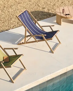 Vilara Складной шезлонг для улицы в полоску синего и бежевого цвета